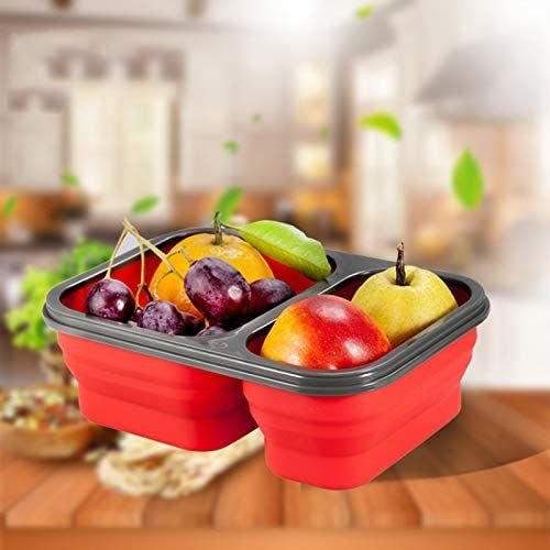 Home > Lunch Box Bento Box Collapsible Silicone Lunchbox with Two Compartments BPA Free Heat Resistant Great for School Work Camping Hiking Food Storage