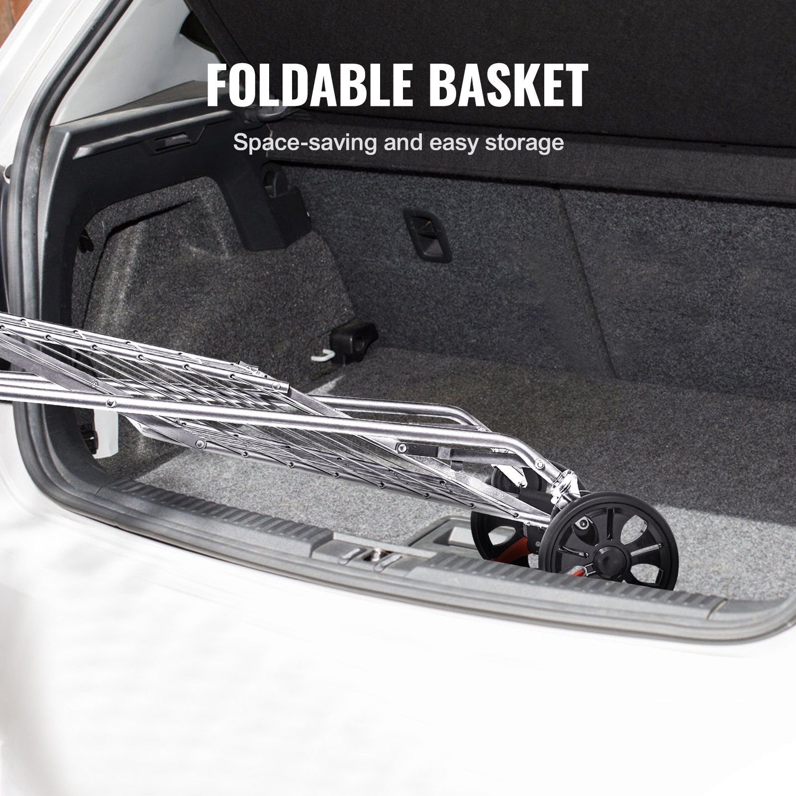 Crafted with sturdy metal, this foldable utility cart is all about high capacity. Its sizeable rear wheels and broad load-bearing structure ensure stability. Make family shopping trips a walk in the park.